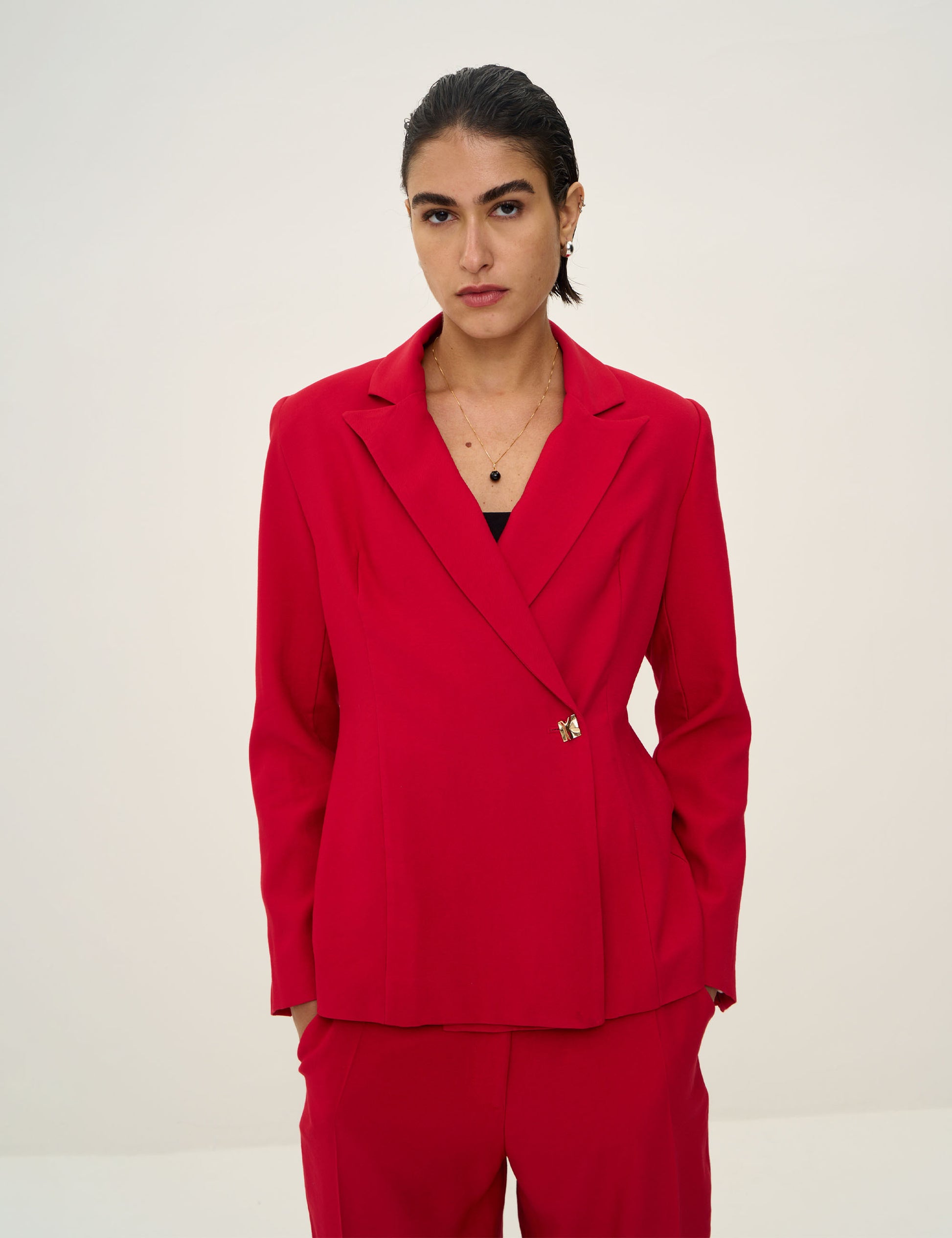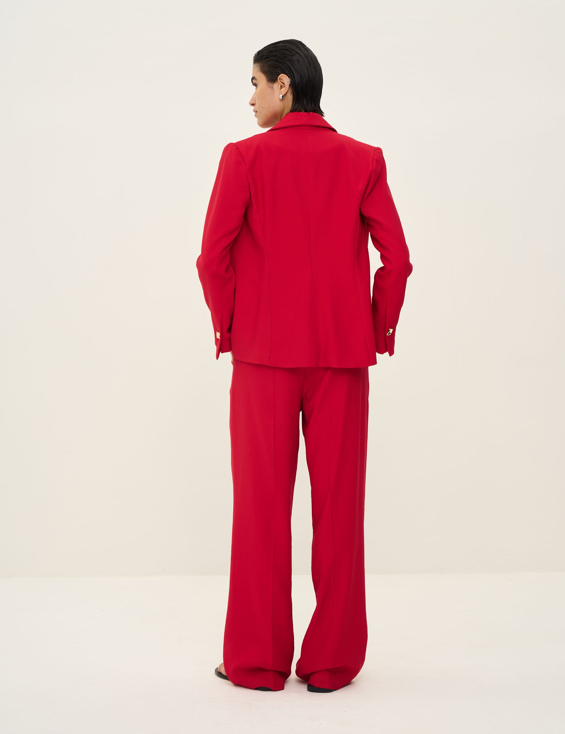 Ensemble élégant composé d'une veste blazer et d'un pantalon coordonnés. La veste arbore un bouton latéral discret et une coupe impeccable qui épouse harmonieusement la silhouette. Le pantalon, doté d'une taille élastiquée, offre un confort optimal sans compromettre l'élégance. Parfait pour les occasions formelles ou le port quotidien raffiné, cet ensemble allie style intemporel et praticité.
