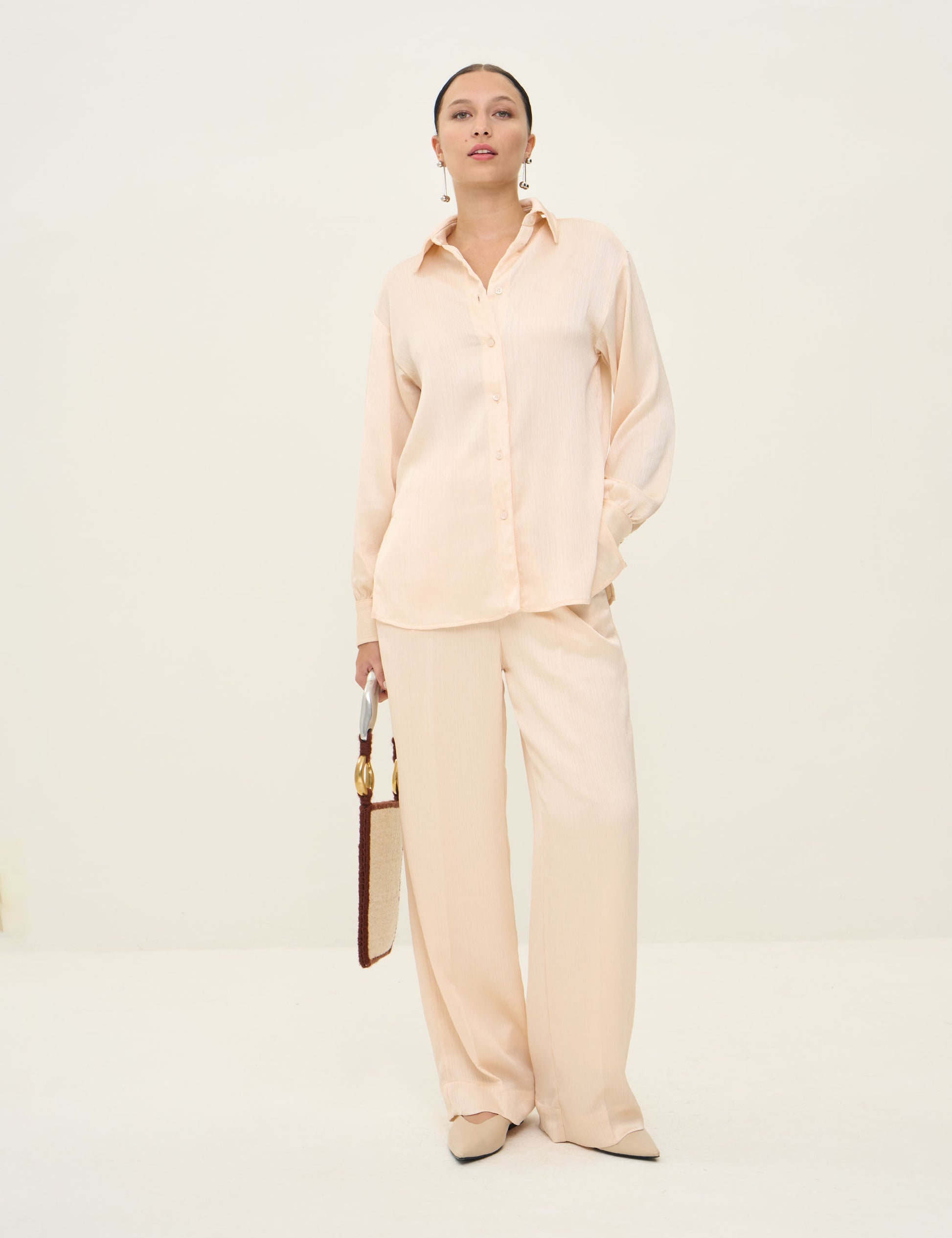 Cet ensemble en viscose plissée allie confort et élégance sans effort. La matière fluide et respirante épouse délicatement le corps tout en offrant une liberté de mouvement optimale. Le plissé structuré crée du volume là où il faut, tandis que la viscose garantit une douceur incomparable contre la peau. Parfait pour les journées chargées, il se porte facilement du bureau au dîner en ville. Un basique incontournable pour une garde-robe moderne et fonctionnelle.