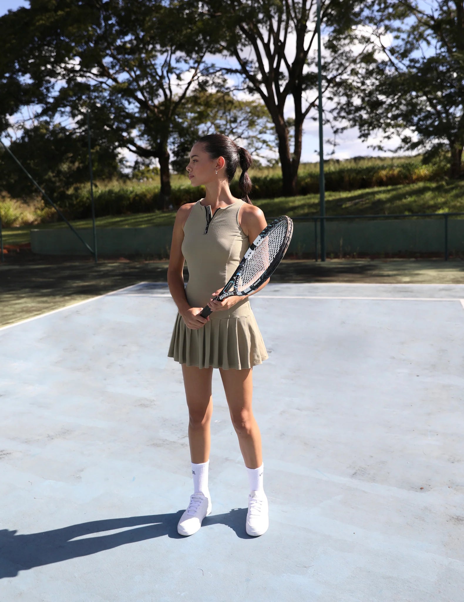 Robe de tennis élégante et fonctionnelle, conçue pour le confort et la performance. Dotée d'un petit zip pratique en haut devant, elle offre une fermeture facile et un ajustement personnalisé. Confectionnée dans un tissu de maillot de bain ultra-confortable, elle épouse le corps sans restriction et sèche rapidement. Parfaite pour les matchs, l'entraînement ou les loisirs, cette robe allie style sportif et liberté de mouvement.